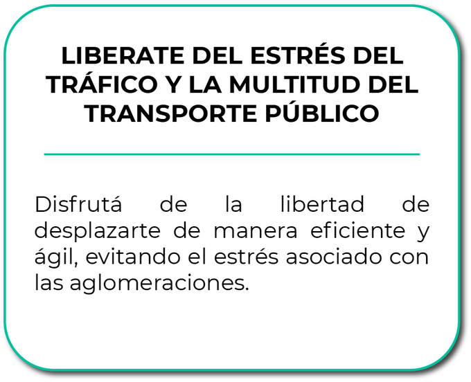 Ahorrá tiempo y dinero. Decile adiós al tráfico y disfrutá de un aire más limpio mientras te desplazás.